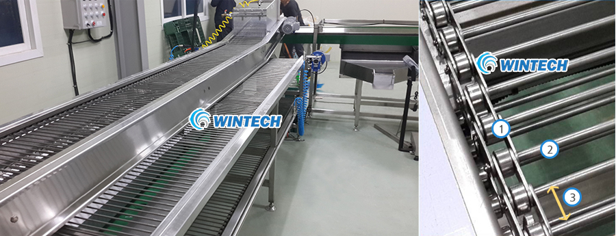 체인에 슬러지가 끼이지 않도록 제작하였으며, 슬러지가 슈트에 의해 하부 슬러지 컨베어로 집결 이송되도록 제작하여, 청결한 생산 작업장을 만들어주는 고장율 제로의 효율적인 정선 컨베어